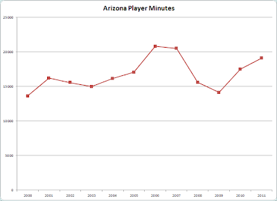 Unlike my previous post, here I am just going to deal exclusively with total minutes, rather than the sum-average. With this much data, I figured the effects of injuries would just end up leveling themselves out anyway.